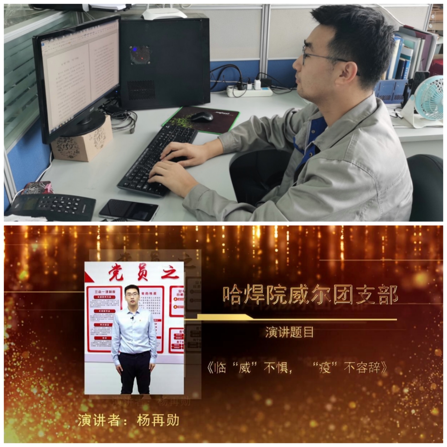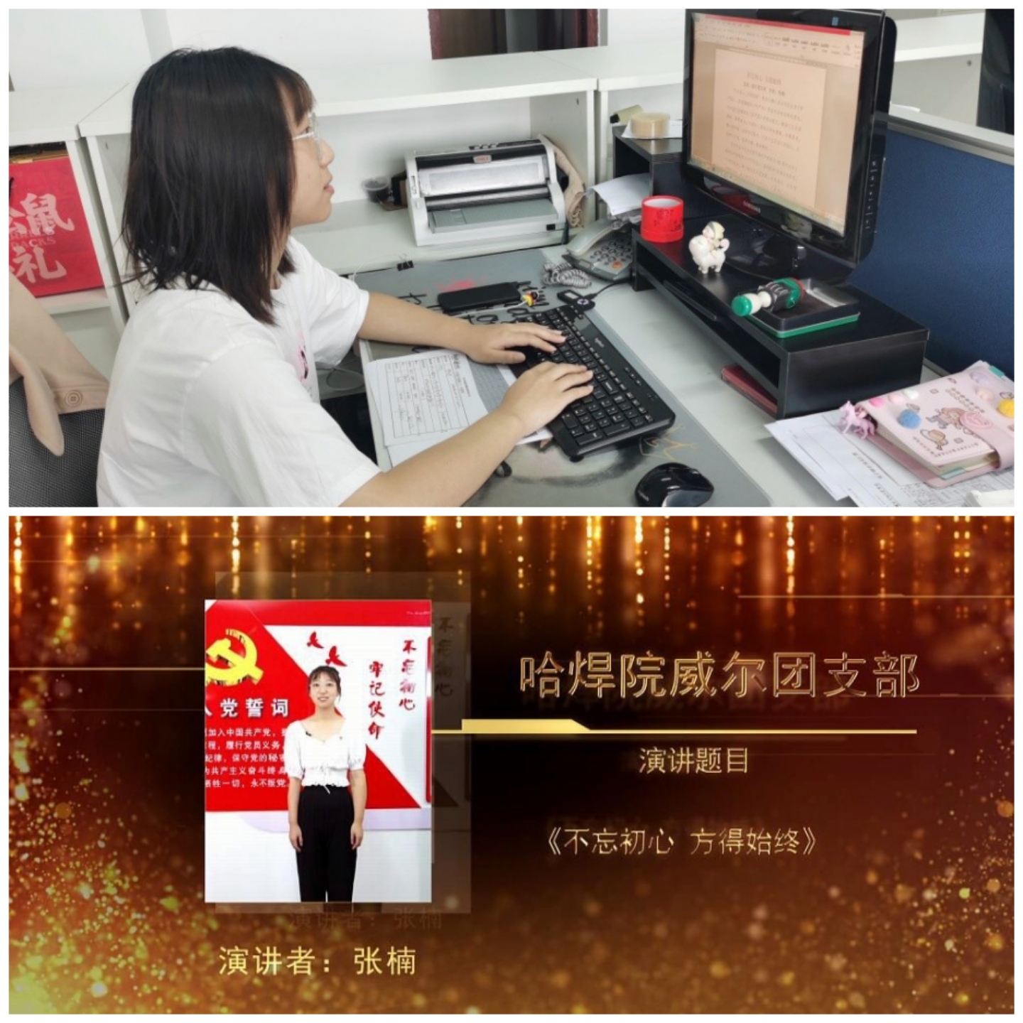 經過哈焊院團委前期組織的初賽選拔,楊再勛和張楠脫穎而出,最終踏上機械總院集團演講比賽決賽的舞臺。本次決賽采取評委專家評閱參賽選手演講稿和演講視頻的形式進行。為備戰比賽,參賽選手都做了精心的準備,他們利用業余時間選題材、撰稿背稿、彩排練習。哈焊院團委組織多名團干部為選手們診脈把關、破冰克難,并在錄制參賽作品的視頻以及背景音樂等方面反復推敲,大家在每一個環節都力爭完美,讓哈焊院兩名選手滿懷信心踏上征程。參賽作品中,選手們緊扣“不忘跟黨初心 牢記青春使命” 這一主題,結合青年人投身裝備制造事業的初心和本單位發展歷程,從不同角度詮釋了對黨、祖國和集團的無限熱愛,對“不忘跟黨初心 牢記青春使命”主題的深刻理解和獨特認知,體現了哈焊院廣大青年的激情、責任、追求和擔當。