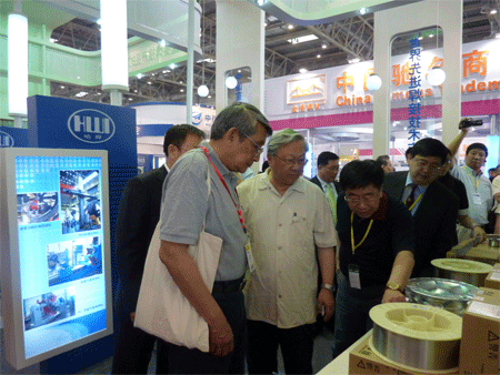 本屆展會上我所展臺以整體形象圖片展示為主,輔以特種焊接材料樣品實物,如鍋爐石化用焊材、低合金高強鋼焊絲、特種不銹鋼焊絲、耐磨堆焊藥芯焊絲、碳鋼、鎳基等材料。這些材料及設備都吸引了許多新老用戶,觀眾絡繹不絕,有效的進行溝通與交流,更有利于我所未來銷售發展。其中,大批觀眾包括眾多外商對展出的不銹鋼焊絲表現出濃厚的興趣,對光亮的焊絲外觀和精致的包裝贊不絕口,是我所此次展覽的一個亮點。