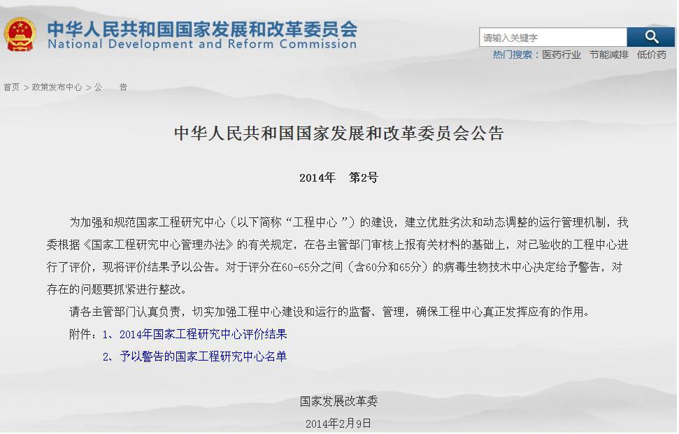 2011-2012年度國家工程研究中心評價工作,從2013年3月展開,經(jīng)過專家組近一年的綜合評審工作,于2014年2月由國家發(fā)改委2號公告(見圖2)宣布評價結(jié)果,哈爾濱焊接研究所高效焊接新技術(shù)國家工程研究中心,由上屆86個國家級中心參評排名63,到本屆90個國家級中心參評排名27,獲得有史以來排名最前的佳績,取得80.3分,爭得申報國家重大項目的優(yōu)先權(quán)。此次成績的獲得是國家投資給我們搭建了展示的平臺,與中心創(chuàng)新能力建設(shè)項目息息相關(guān)。
