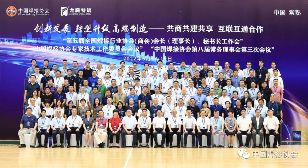 2022年6月18日,由中國焊接協會主辦,常熟市龍騰焊材科技有限公司承辦的第五屆全國焊接行業協會(商會)會長(理事長)、秘書長工作會議,中國焊接協會專家技術工作委員會會議在常熟召開。常熟市人民政府副市長李漢中、中國焊接協會副會長兼秘書長李連勝、常熟市龍騰特種鋼有限公司黨委書記、董事長季丙元,中國焊接協會副會長龍偉民、樊險峰、劉長城、葉德平、謝偉新、張寧紅,中國焊接協會表面工程與增材制造工作委員會理事長劉振英、中國焊接協會監事王春生、中國焊接協會副秘書長林曉輝、方乃文等全國各省市地方行業組織,中國焊接協會分支機構理事長、秘書長,以及國內焊接行業骨干企業領導、專家共計134人出席了本次會議。本次會議主題為“創新發展 轉型升級 高端制造”。