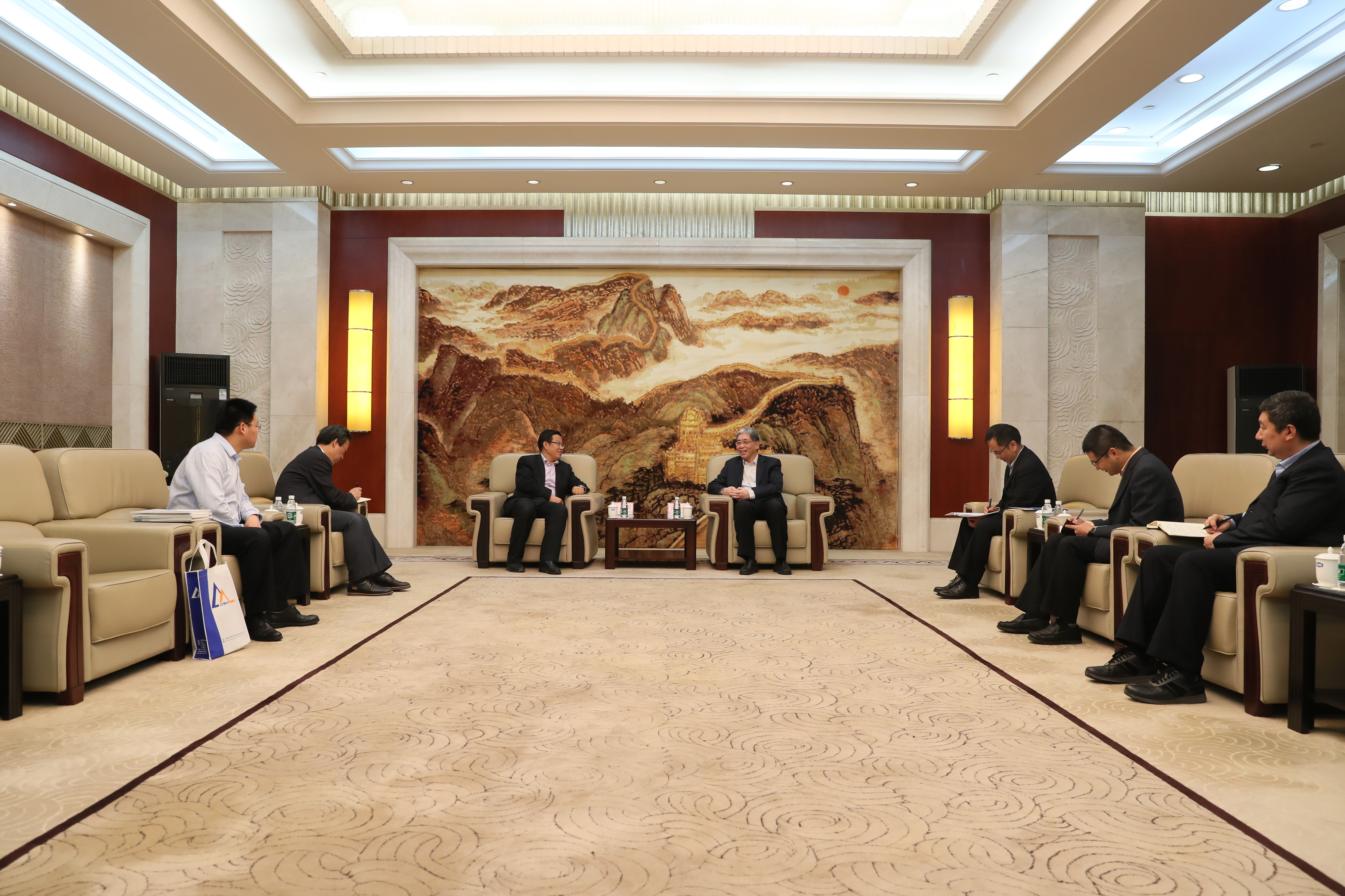 2018年4月27日,機械總院集團董事長、黨委書記、總經理王德成率隊拜訪中國船舶工業集團有限公司(以下簡稱“中船集團”),雙方就加強合作進行了會談與溝通。中船集團董事長、黨組書記雷凡培熱情接待了王德成董事長一行。